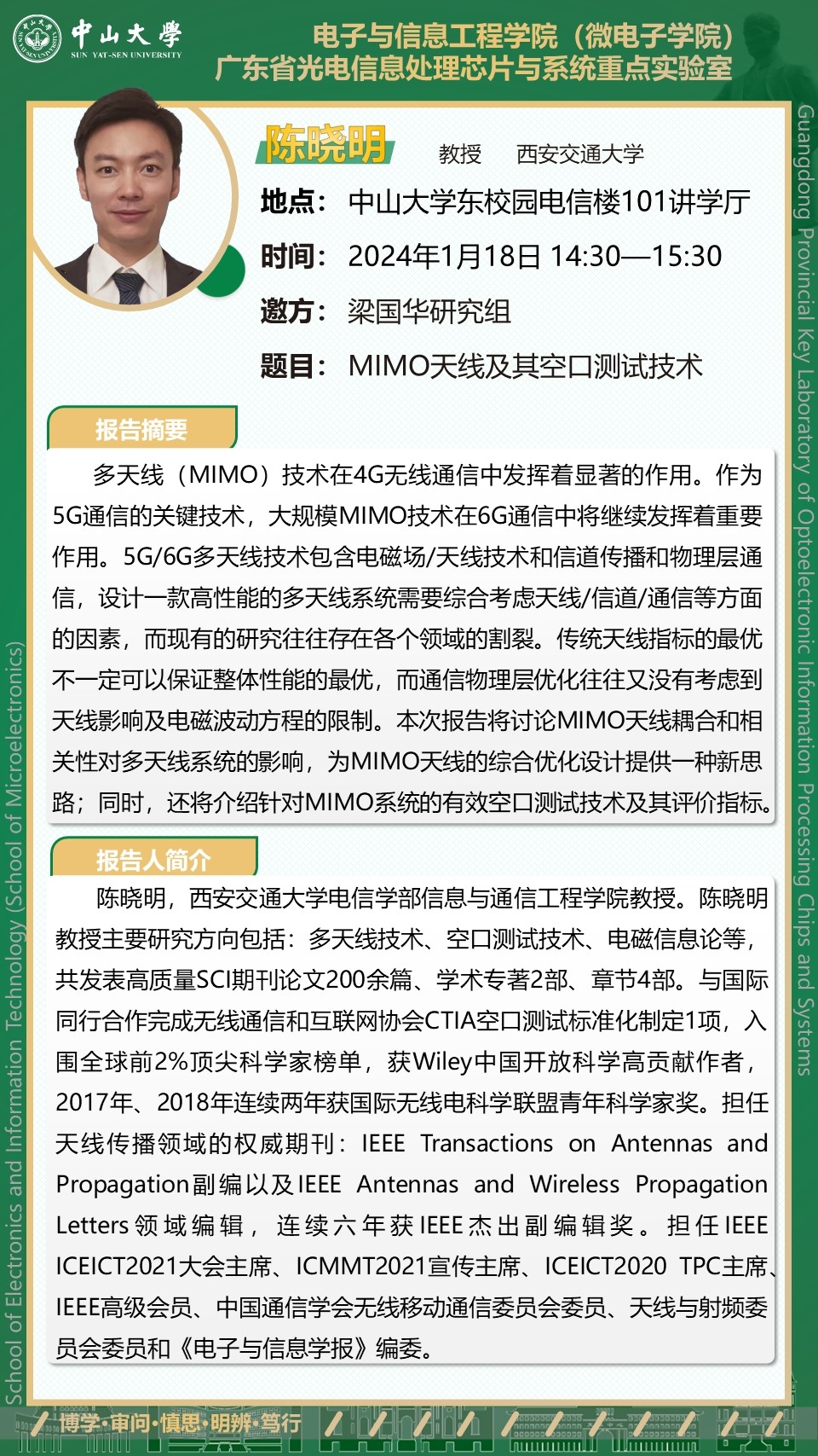 导航痕迹 首页 学术报告:(2024年1月18日)MIMO天线及其空口测试技术 扫描此二维码分享 学术报告:(2024年1月18日)MIMO天线及其空口测试技术 发布人:林锐娜 发布日期:2024-01-18 活动时间 2024年01月18日 14:30 - 2024年02月18日 15:30 活动地址 18小说 东校园电信楼101讲学厅