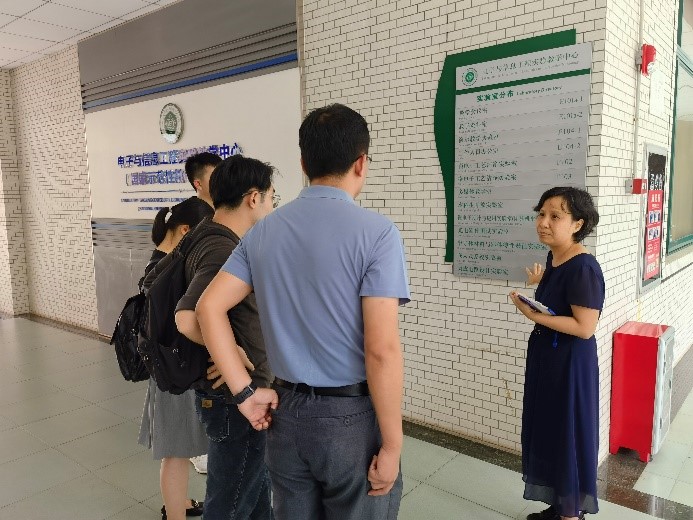 谢德英副主任介绍了中心微电子和光电信息专业实验平台的架构、办学基本情况,以及特色实验的建设。陈翔副教授引导参观了中心的成果展厅,介绍了本中心成立以来学生和教师取得的优秀成果。